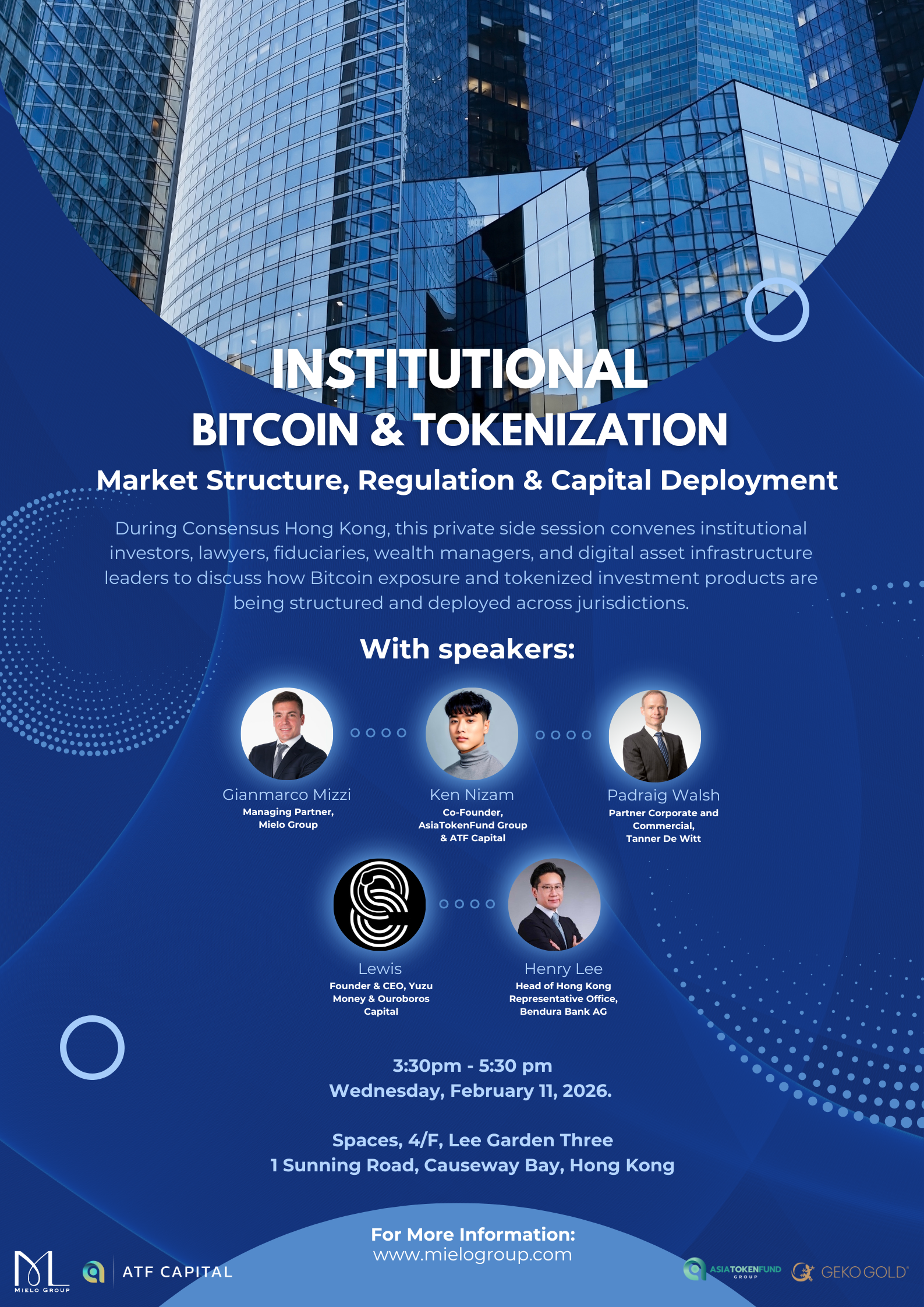 As institutional interest in digital assets continues to mature, the conversation has shifted decisively from speculation toward structure, compliance, and real-world capital deployment. Against this backdrop, a private side session titled “Institutional Bitcoin & Tokenization: Market Structure, Regulation & Capital Deployment” will take place during Consensus Hong Kong, organized by Mielo Group, a strategic advisory firm specializing in institutional digital assets, cross-border structuring, and regulatory strategy.