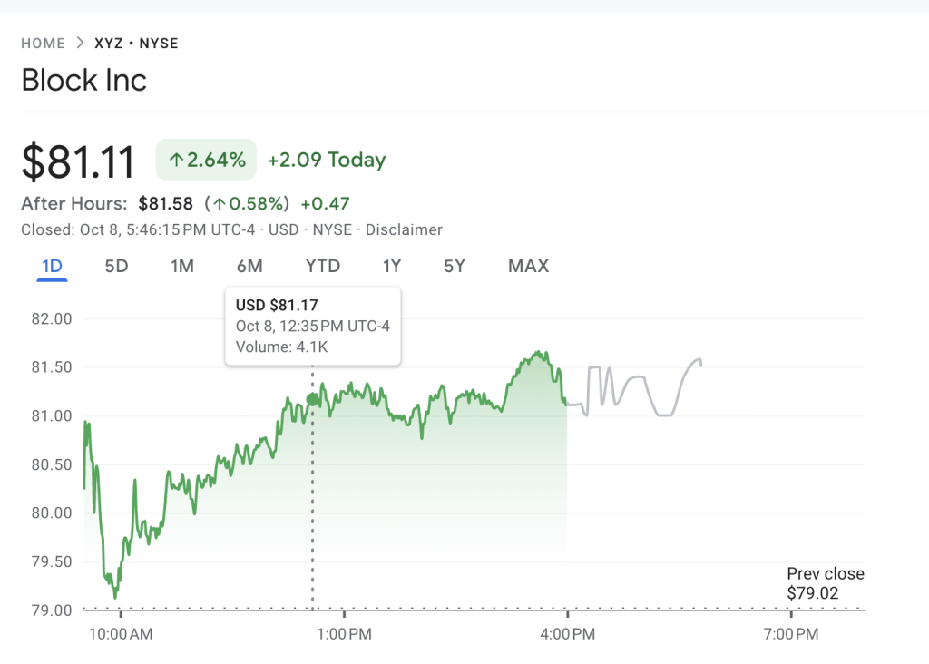 Following the announcement, Block’s stock rose 2.5% to $81, its highest level since February, reflecting investor optimism around the company’s renewed Bitcoin push.