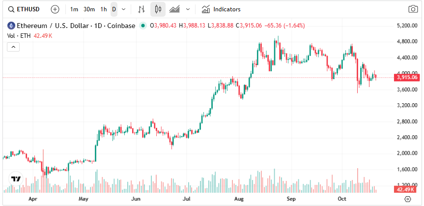 Technical analysts now point to $3,800 as a critical support level, with further downside possible if prices fail to hold.